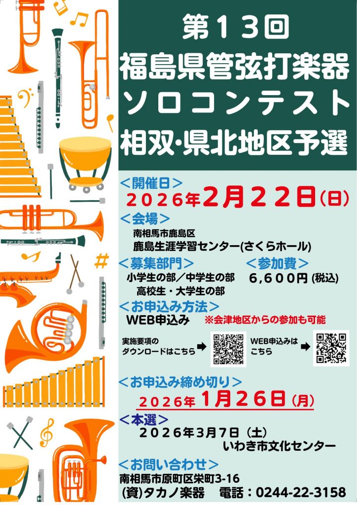 【予告】 第13回 福島県管弦打楽器ソロコンテスト 相双・県北地区予選のお申込み開始日時について