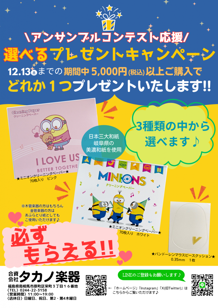アンサンブルコンテストに向けてタカノ楽器が応援致します✨