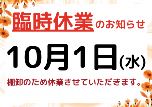 ◇『臨時休業と10月の営業日・店休日のおしらせ』